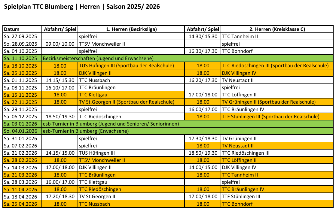 myTischtennis.de - click-TT - Bezirk Hochschwarzwald 2025/26 - Kreisklasse C